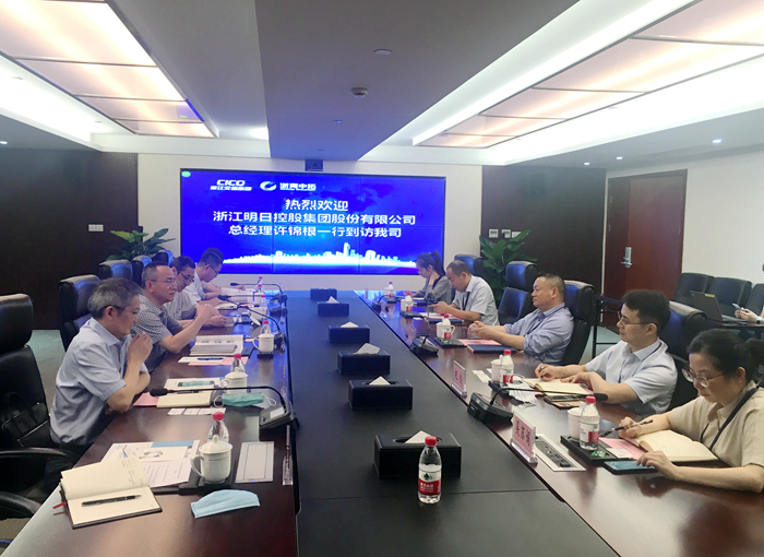 為進一步加強先進同行企業的交流學習,取長補短,6月19日下午,明日控股總經理許錦根帶隊赴浙商中拓考察交流,受到浙商中拓總經理助理雷邦景熱情接待,雙方進行友好座談。