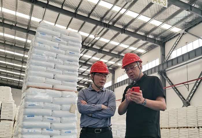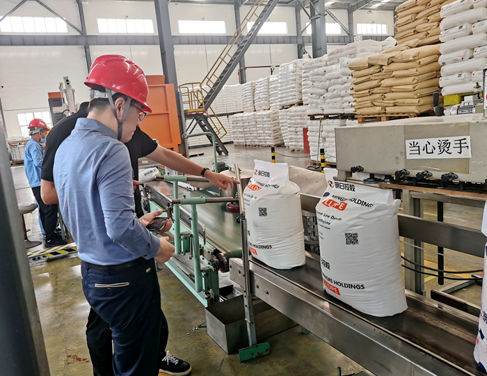 在分裝灌包車間,韓新偉饒有興致地觀看了塑料粒子灌包的全過程。伴隨著機器的輕鳴,從稱重、灌包、封裝到堆疊、裝運,一氣呵成,一袋袋印有明日控股logo的塑料原料整整齊齊呈現(xiàn)在眼前。作為公司的形象代表,它們將把明日控股服務(wù)客戶的理念傳達到每一個用戶,對于打造明日品牌、提升企業(yè)形象具有重要意義。