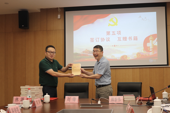 業(yè)務(wù)交流結(jié)束后,劉鋒書記、韓新偉書記代表雙方支部簽訂了《基層黨組織結(jié)對共建協(xié)議》并互贈(zèng)書籍,為下一步加緊合作,實(shí)現(xiàn)合作共贏打下基礎(chǔ)。