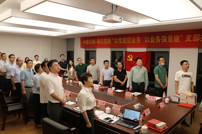 首先,由中煤股份公司化銷中心、中煤化天津公司黨委委員、副總經(jīng)理鄭文帶領(lǐng)全體黨員重溫入黨誓詞,隨后韓新偉書記和劉鋒書記分別介紹了共建雙方黨組織基本情況和黨建工作開展情況。韓新偉書記著重介紹了明日控股黨總支通過黨建思想引領(lǐng)推進(jìn)公司二次改革以及以夜學(xué)會(huì)推進(jìn)企業(yè)黨建與業(yè)務(wù)融合的經(jīng)驗(yàn),并交流了以黨日活動(dòng)為抓手推動(dòng)支部黨建與業(yè)務(wù)融合、以人才培養(yǎng)為抓手加強(qiáng)黨員干部隊(duì)伍建設(shè)等方面的心得體會(huì)。劉鋒書記介紹了中煤化銷黨支部在抗疫情、保春耕中的成果,并分享了“三基建設(shè)”、干部培養(yǎng)、黨風(fēng)廉政、公益事業(yè)等方面的經(jīng)驗(yàn),通過一段中煤化銷自編自導(dǎo)自演的《尿素奇緣》小品,展示了中煤化銷的文化氛圍及員工風(fēng)采。