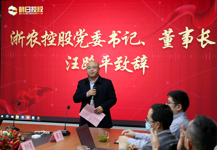 汪路平在致辭中,首先肯定了明日控股在當(dāng)前疫情管控的形勢下,堅(jiān)持按要求以視頻形式召開年度表彰大會(huì),這充分體現(xiàn)了公司對(duì)優(yōu)秀團(tuán)隊(duì)和優(yōu)秀人才的高度肯定和重視。他代表浙農(nóng)控股集團(tuán)對(duì)明日控股過去一年取得的成績表示祝賀,并透過視頻向明日全體員工致以新春祝福。