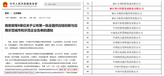 喜報!明日控股成功獲評首批全國供應(yīng)鏈創(chuàng)新與應(yīng)用示范企業(yè)