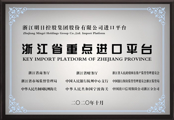 △明日控股獲“浙江省重點進(jìn)口(供應(yīng)鏈)平臺”稱號