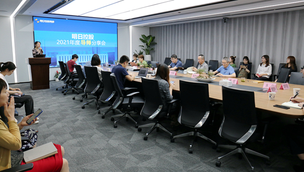 9月10日,在教師節這個特殊的節日,明日控股召開2021年度優秀導師分享暨導師制總結交流大會。會議采取釘釘直播的形式召開,在杭州總部開設線下主會場,廣州、廈門等10個分會場以視頻直播的方式連線參加,明日控股董事長韓新偉、總經理許錦根出席并講話。