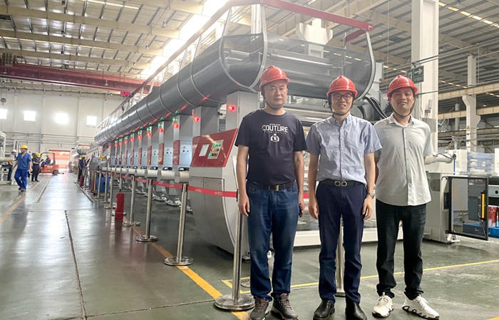 在過去的一個月中,朱斌帶領團隊克服疫情影響,實地赴陜西北人印刷機械有限責任公司對設備進行現場驗收,確保如期發貨。投產前,副總經理蔣建清帶領團隊緊盯現場,確保安裝、調試、培訓“三精確”、“三到位”,保障了安裝即調試、調試即投產,大大提高了新設備投入使用效率。