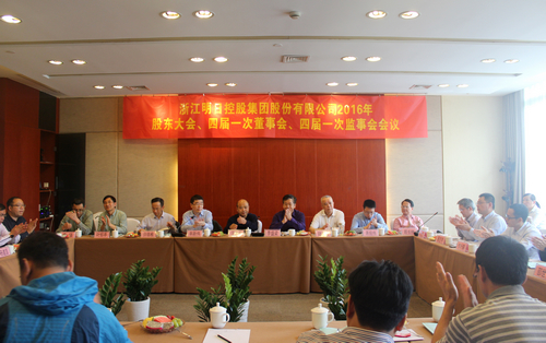 4月18日,公司2016年度股東大會、四屆一次董事會、四屆一次監事會會議在杭州金溪山莊順利召開,會議由公司董事長韓新偉主持,大股東浙農控股集團董事長汪路平、副董事長李盛梁出席會議并做重要講話,公司股東(代表)、董事、監事參加會議。